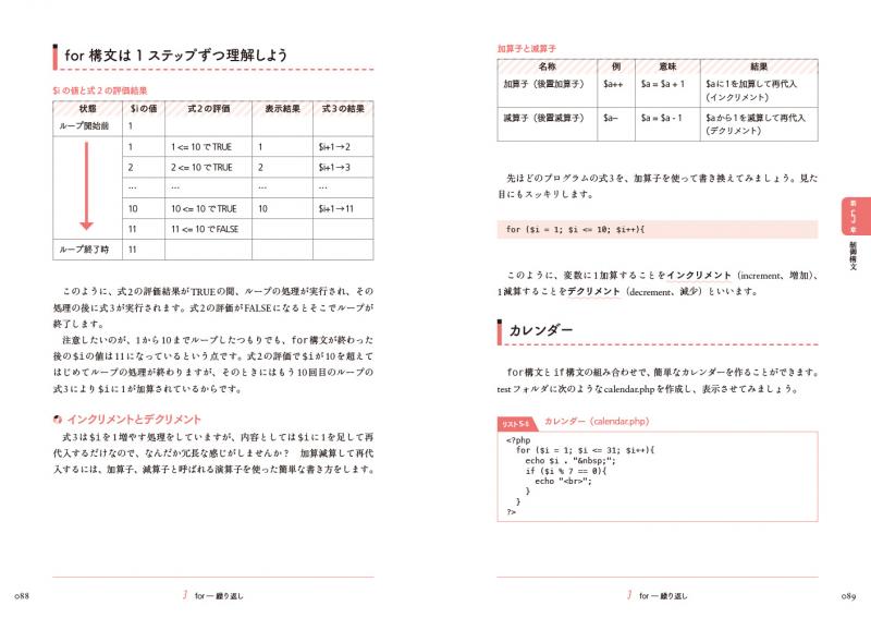 プログラミングの基礎知識や作法、PHPの基本構文、テクニックなどを無理なく習得し、