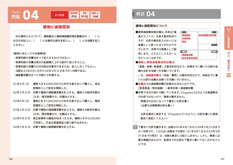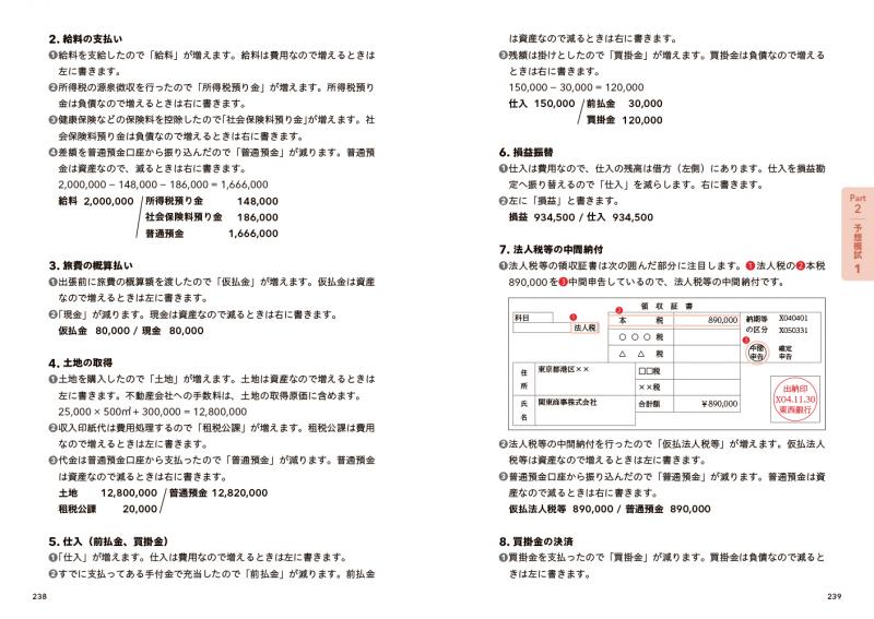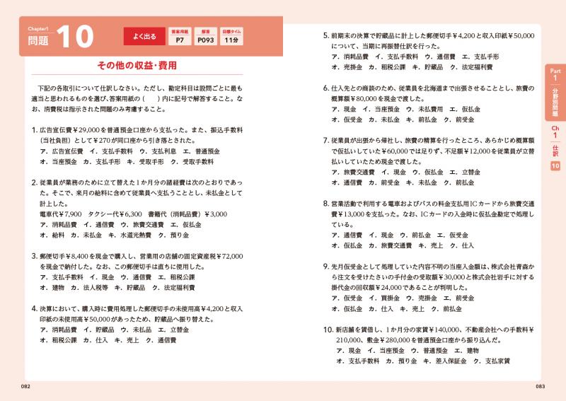 本書は、分野別(仕訳・補助簿・精算表・財務諸表など)の問題を解いたあとに、予想模試に取り組む構成です。そのため、一問一問をしっかり理解しながら着実にムダなく試験対策ができます!!
